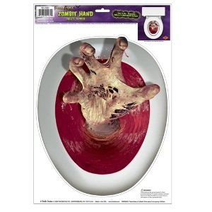 Let the Halloween Celebrations begin with Decorations! Start your Halloween Party off with a bang! and make your guests feel like they are in for a Real Haunting Event! Contains: (1) Reusable Zombie Hand Peel 'N Place Toilet Topper per Sheet (Pkg/1) Instructions: 1) Clean surface with a damp cloth. 2) Remove pre-cut Peel 'N Place Toilet Topper from backing. 3) Apply non-printed side to damp surface. 4) Press and smooth from center of Cling.